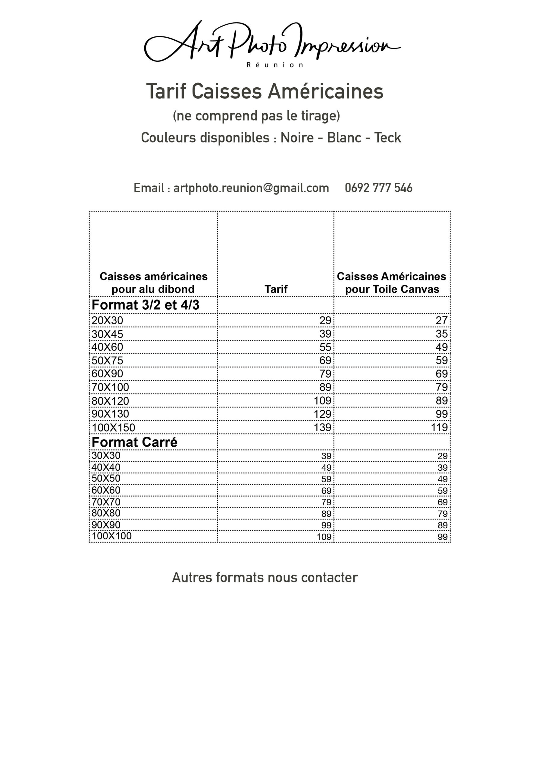 Un encadrement digne d’un véritable écrin pour toutes vos oeuvres ! Vedette des galeries, la caisse américaine est aujourd’hui présente dans les meilleurs ateliers. Elle met en valeur toutes vos créations sur papier, toile ou papier d’Art sur supports Alu Dibond, PVC, toiles et autres créations de votre oeuvre …